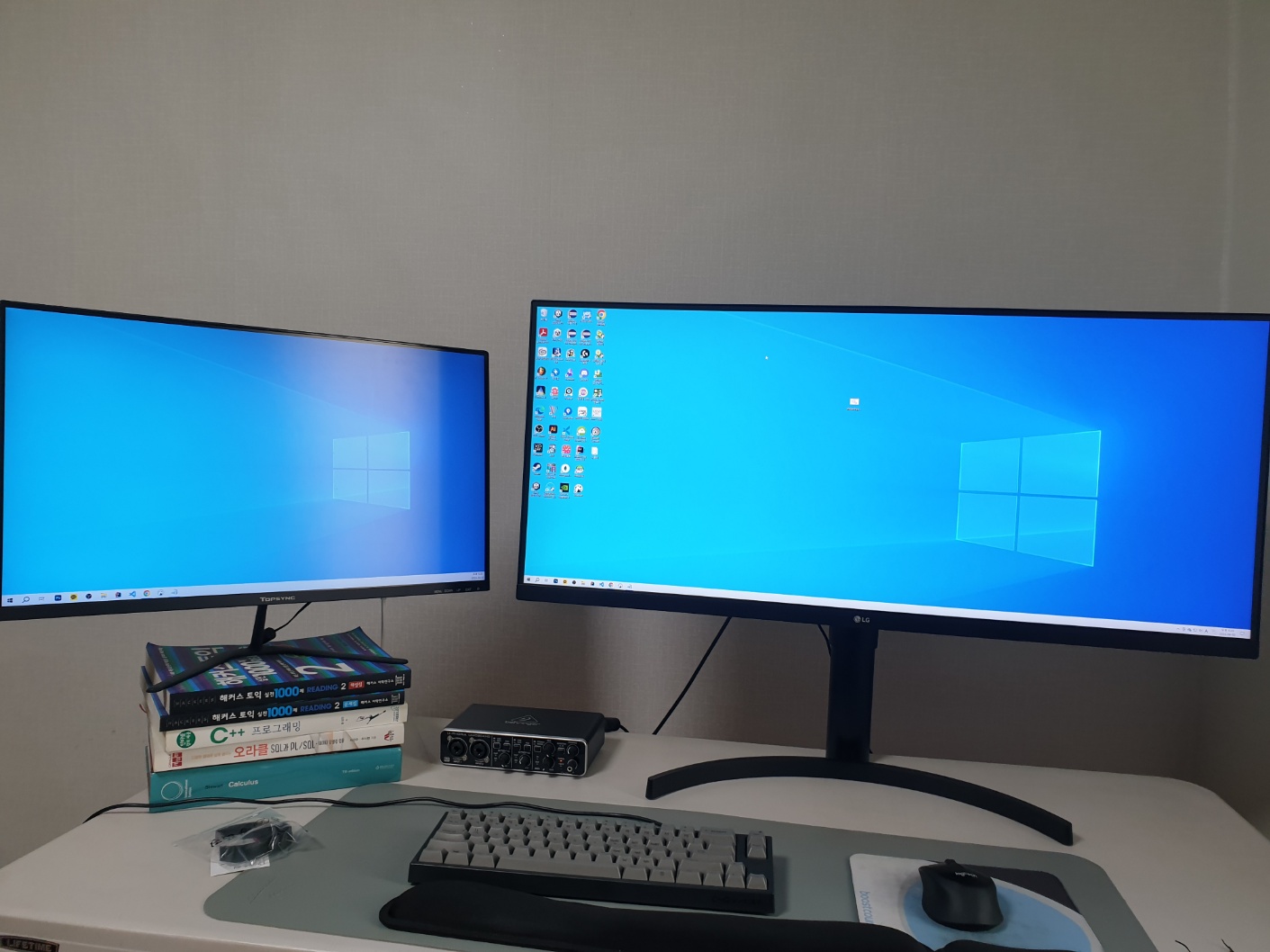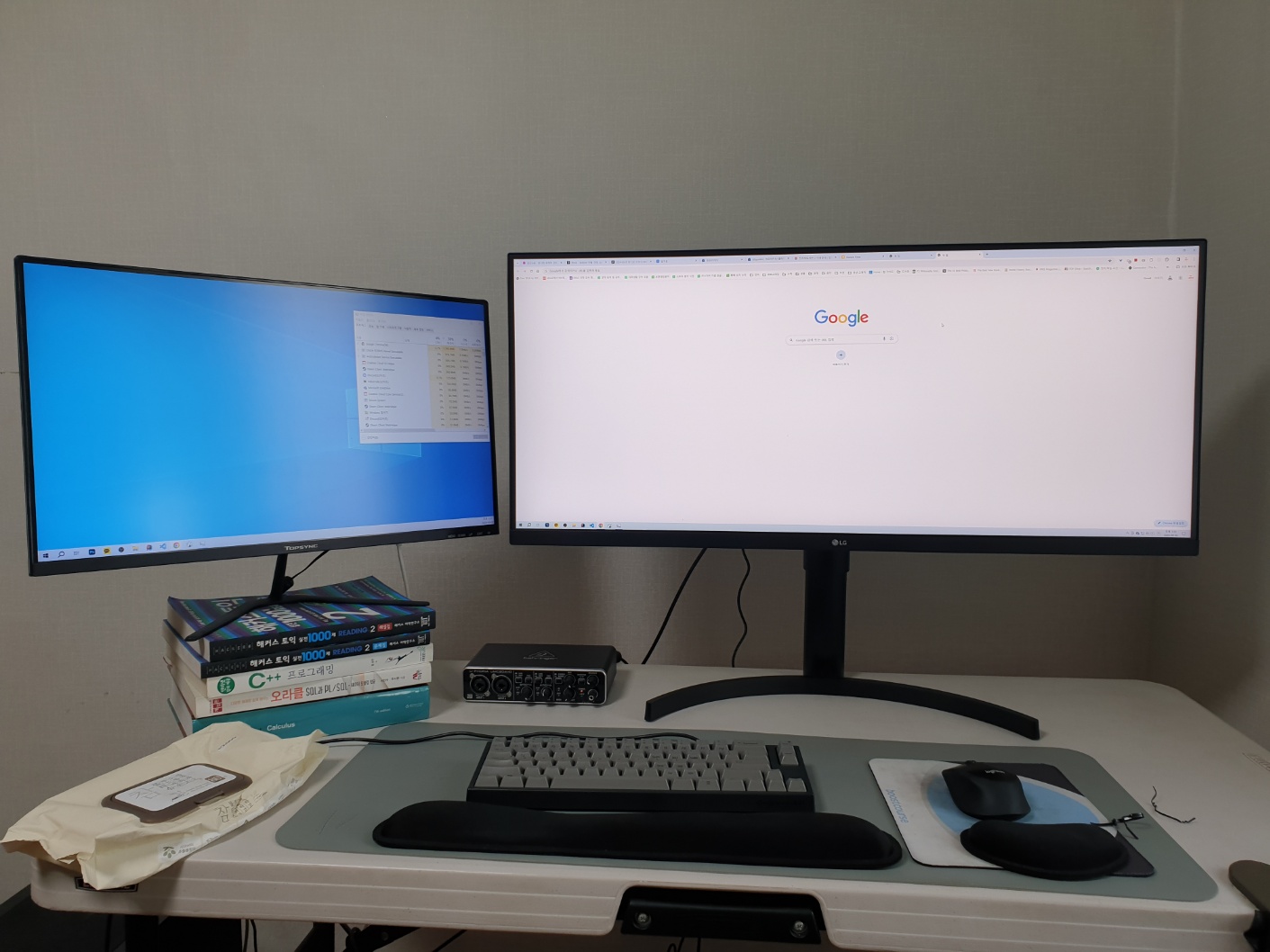 궁여지책으로 더블 모니터를 사용했는데, 사람의 욕심이란 게 끝이 없다고, 좀 더 큼지막한 무언가로 세팅하고 싶었다.