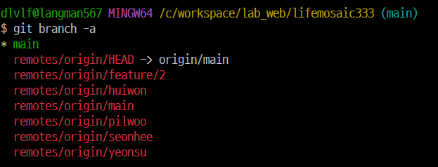 Github의 원격 저장소에서 'pilwoo' 브랜치를 삭제했는데, git bash에서 브랜치를 검색해보니,빨간 글씨로 remotes/origin/pilwoo, 즉 아직 원격저장소에 남아있다고 한다.